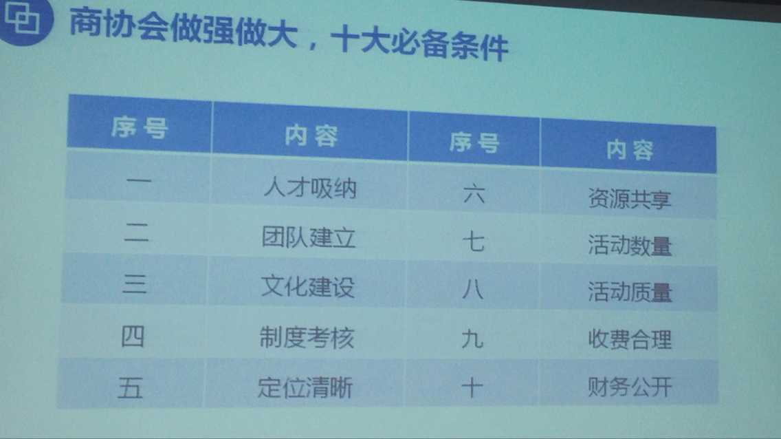 4月12日,协会会长、秘书长参加了由成都市中小企业协会举办的商协会标准化管理公益论坛。本次论坛邀请到了中国商协会标准化运营管理专家、大连市创发企业商会会长周爱忠作为分享嘉宾,周爱忠就社团组织如何吸纳人才、重用人才、如何搞好文化建设做了有益的分享,开阔了我们的思路受益匪浅。